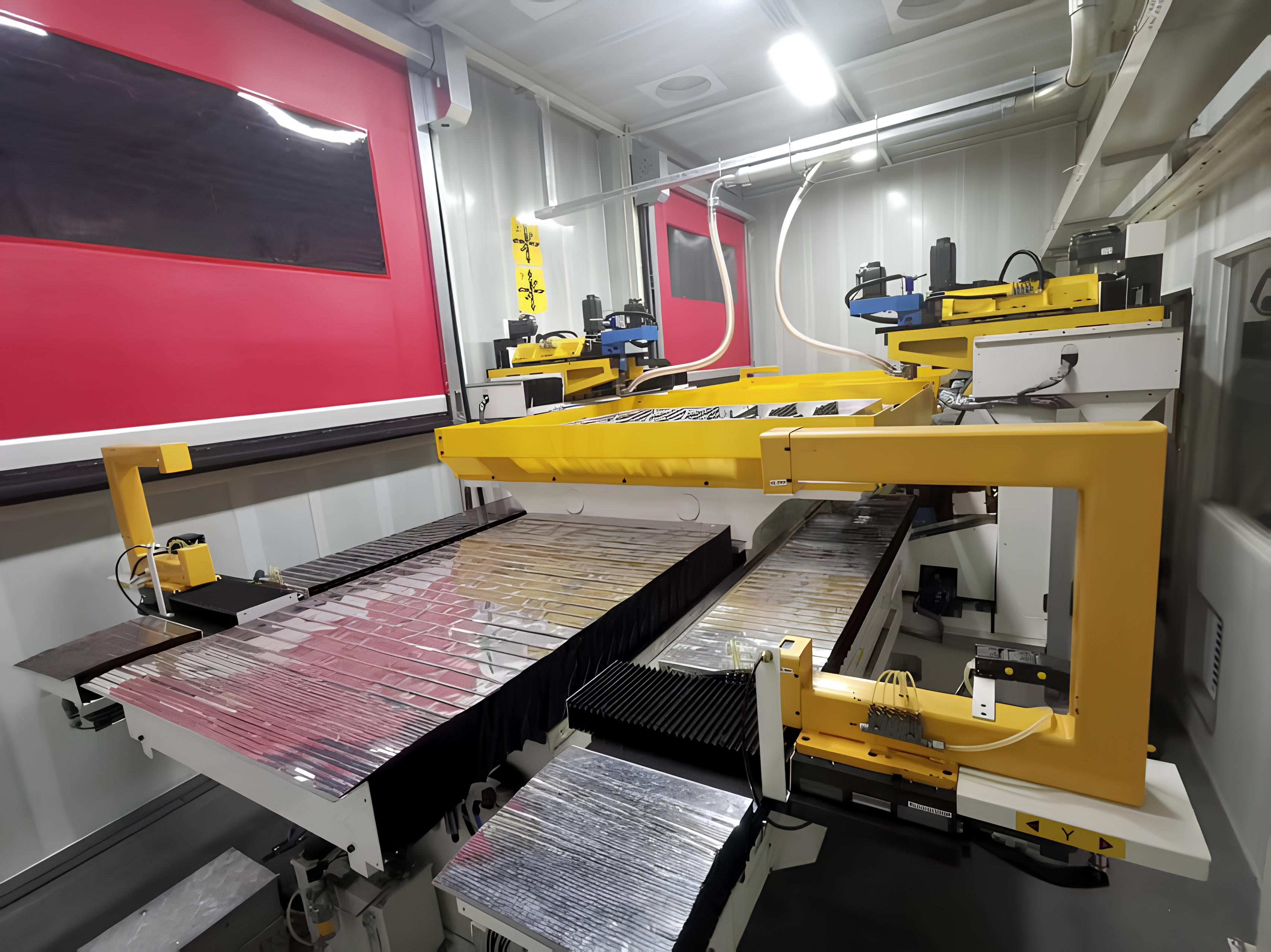 2、高效率:4組3軸伺服模組聯(lián)動加工,加工效率高,設(shè)備占地面積小。