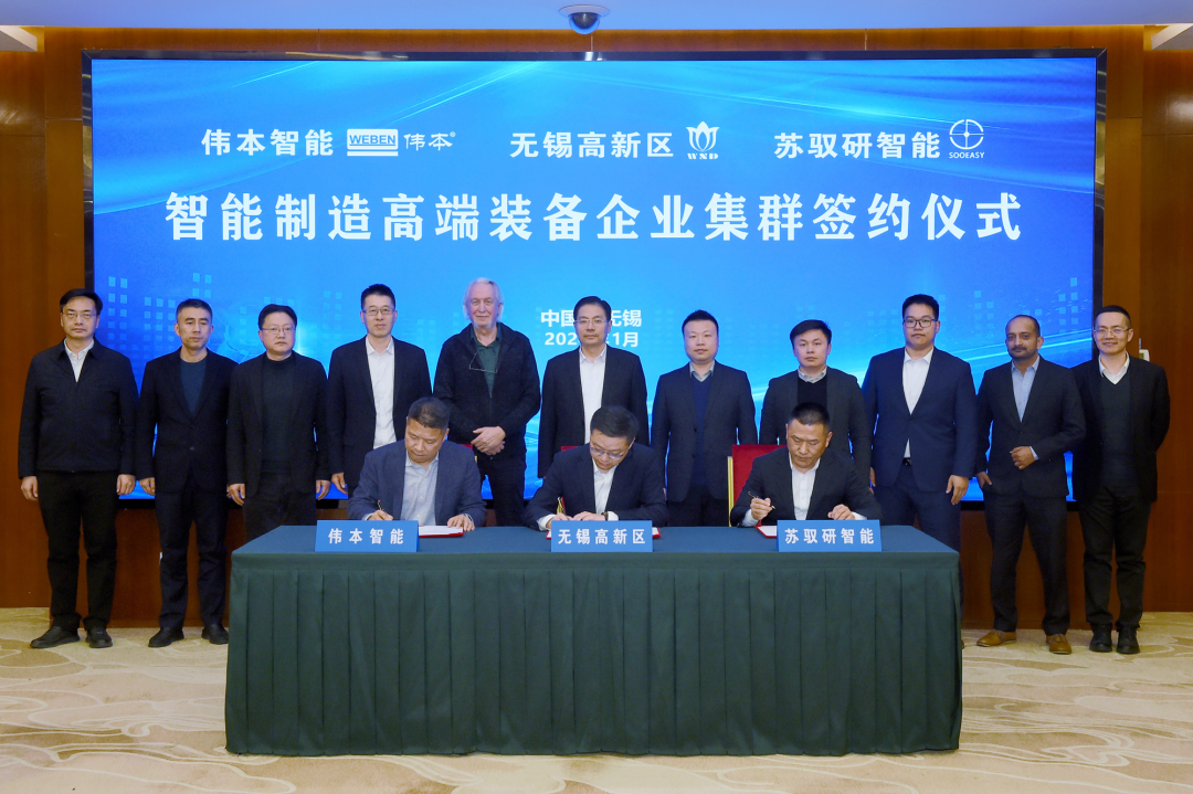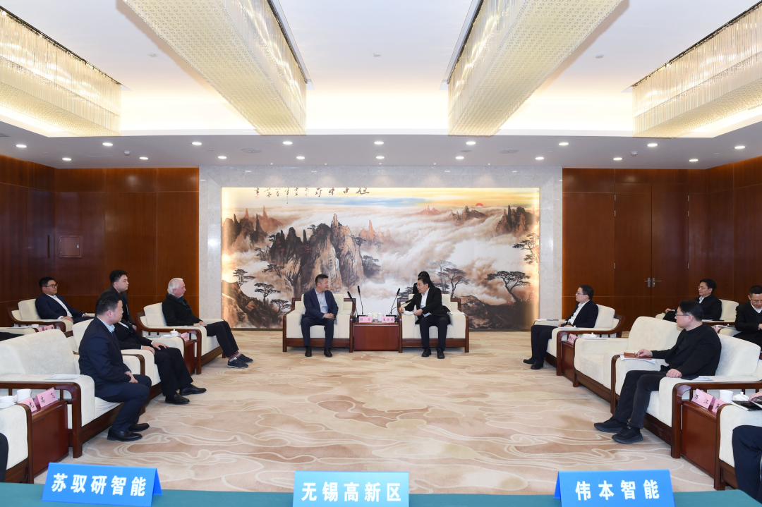 1月5日,偉本智能董事長(zhǎng)彭榮、瑞典艾克斯康董事長(zhǎng)卡爾、蘇馭研智能總經(jīng)理洪文標(biāo)一行來(lái)訪(fǎng)無(wú)錫高新區(qū)。無(wú)錫高新區(qū)黨工委書(shū)記、新吳區(qū)委書(shū)記崔榮國(guó)與彭榮、卡爾、洪文標(biāo)一行交流會(huì)談,并出席智能制造高端裝備企業(yè)集群簽約儀式。區(qū)領(lǐng)導(dǎo)顧國(guó)棟參加活動(dòng)。
